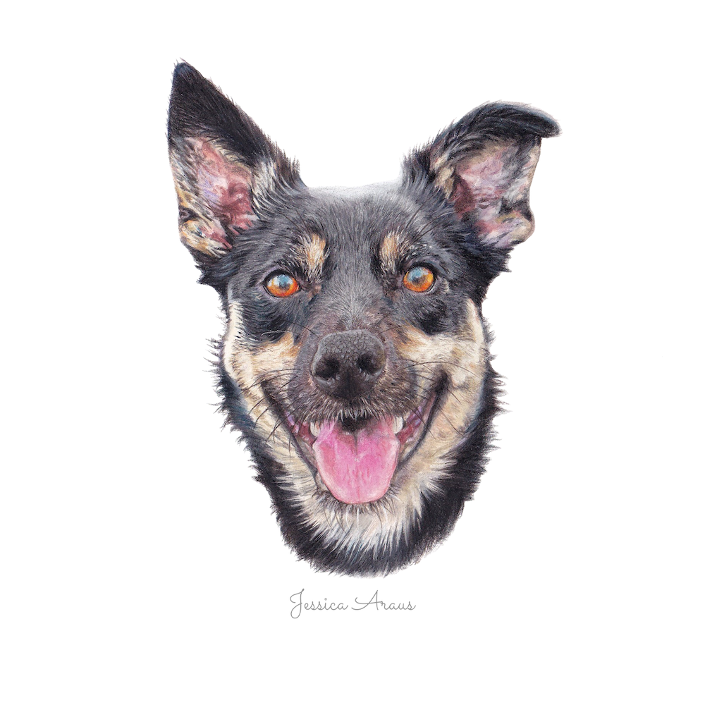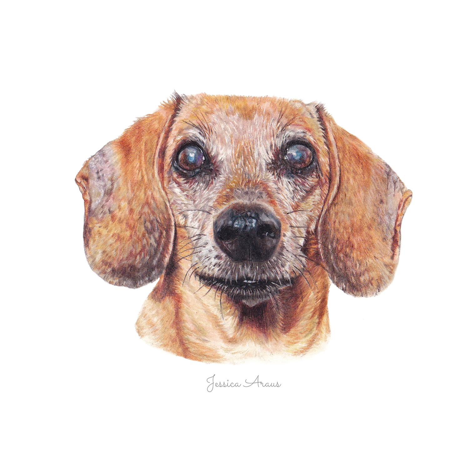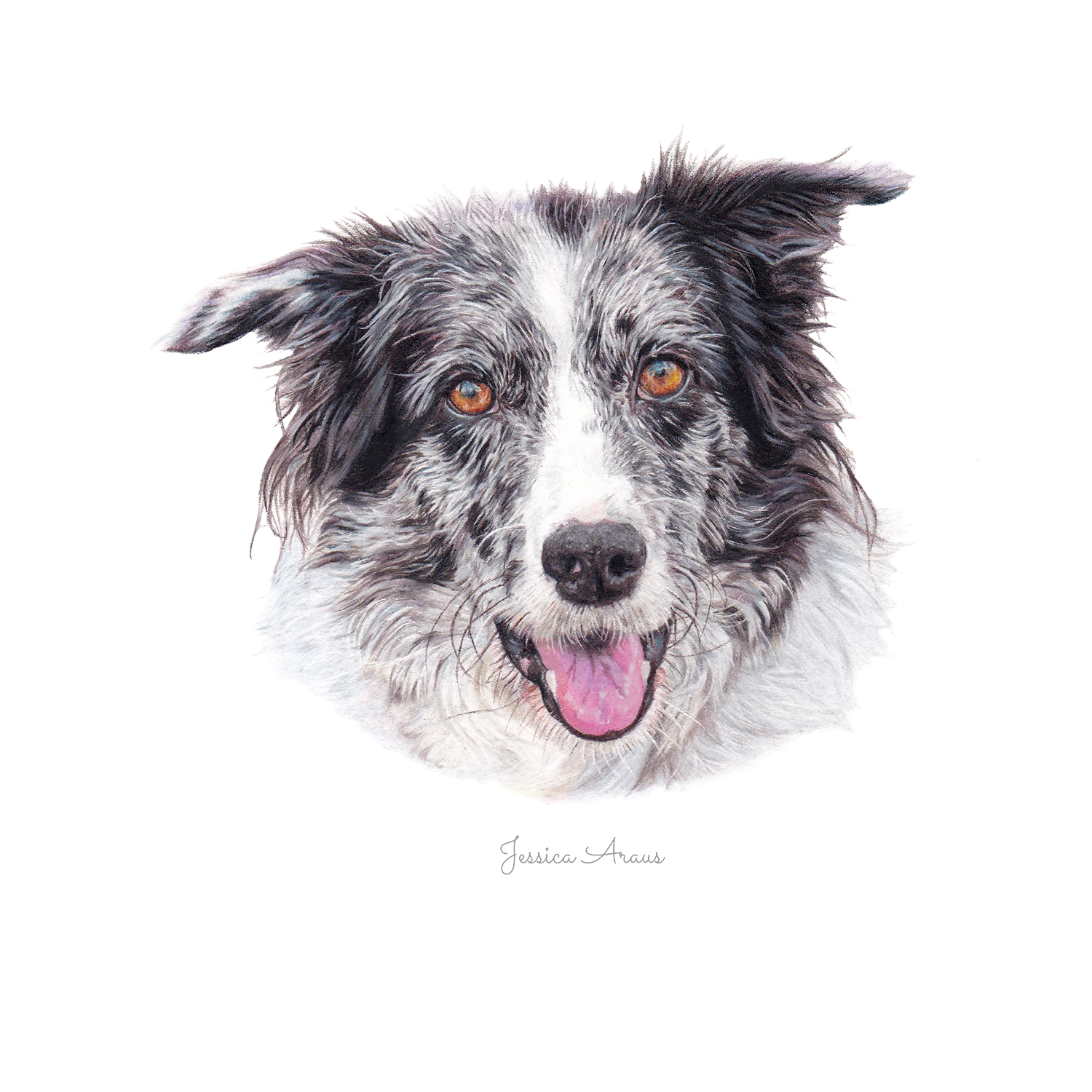 Colored pencil illustrations of various breeds of dogs, including Smooth Collie, Border Collie, and Dachshund.